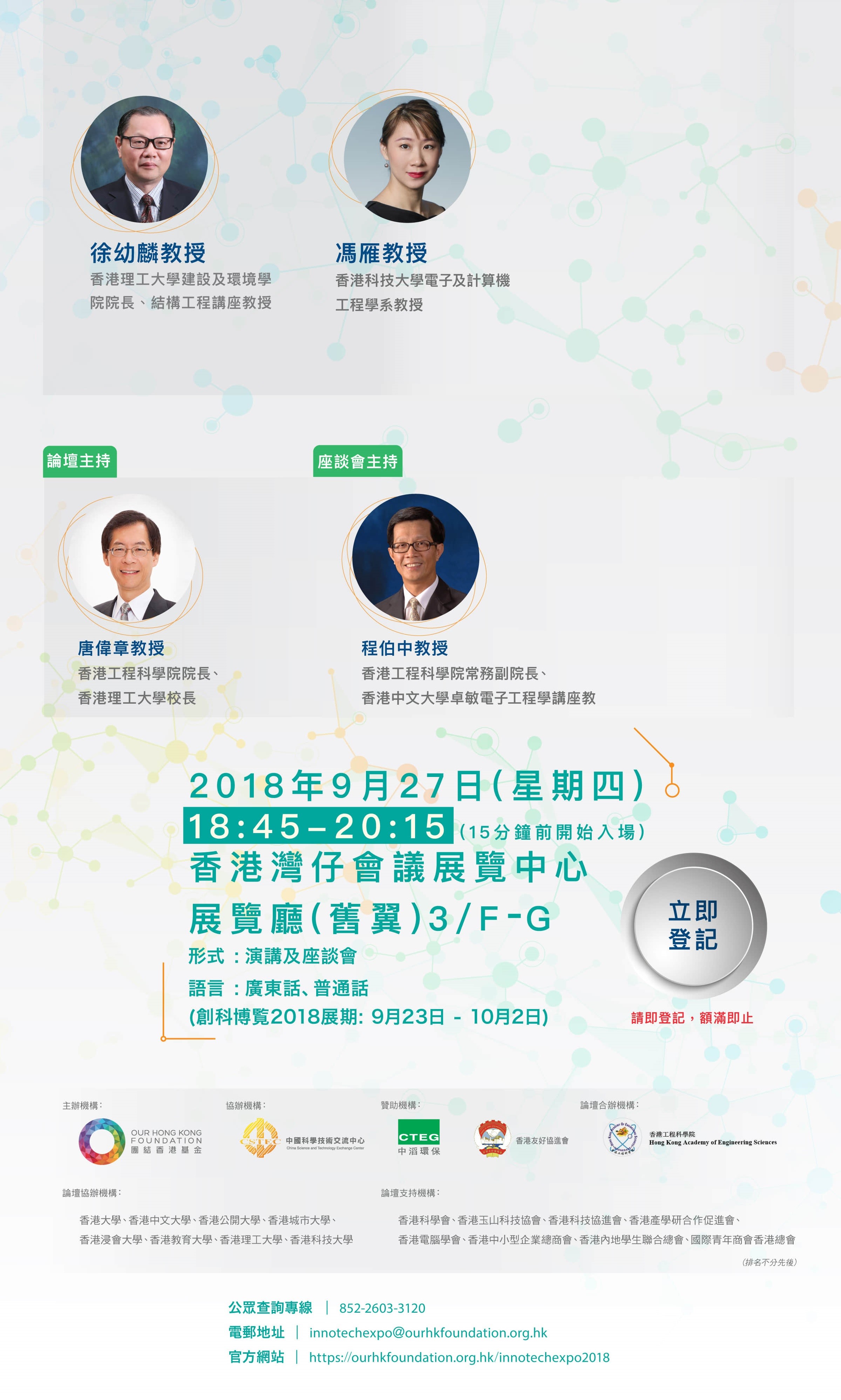 誠邀出席 創科博覽2018專家論壇《工程科學與明日世界》2018 InnoTech Expo