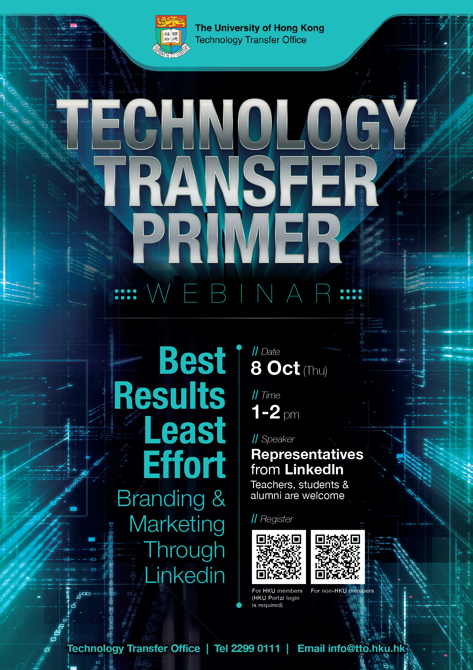 If you do not wish to receive emails from us in the future, you can send an unsubscribe request to us by email to info@tto.hku.hk.