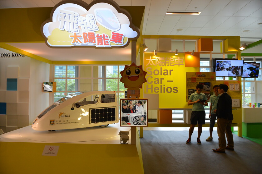 Back to 新闻The nine-day InnoCarnival 2016 was held at the Hong Kong Science Park from 29 October to 6 November 2016, under the event’s main theme of "Smart Living.Innovative Hong Kong". This year, the theme of The University of Hong Kong’s pavilion was "Scientific Carnival" and we showcased 7 research projects from various Faculties, including the Faculties of Engineering, Medicine and Science. Our key exhibit for this year was the solar car – Helios, which has won the Overall Champion Award and Innovative Design Award of the "New Energy New Generation" solar car competition held by the Electrical and Mechanical Services Department (EMSD) early this year.