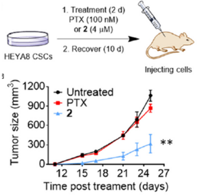 The compound candidates can reduce the tumor-forming ability of ovarian CSCs in mice (in contrast, paclitaxol may induce more ovarian CSCs at certain concentration).