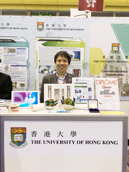 A toothbrush designed to target all dental surfaces in particular the inter-dental, retromolar and sub-gumline niches, so called the “dead-corners” where other toothbrushes are difficult to clean up. It is jointly developed by Professor Jin Lijian and Dr Ng Tze Chuen, Faculty of Dentistry, HKU.