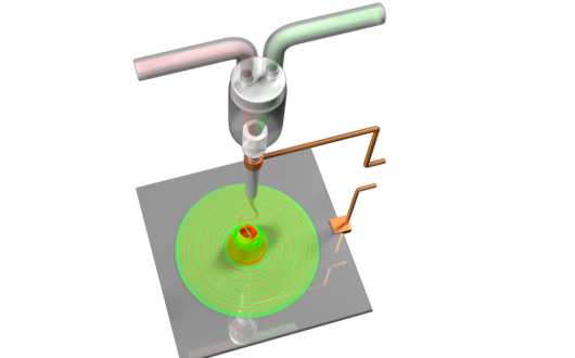 Conventionally, viscous fluids are mixed with mechanical methods like impellers and the mixing may be enhanced by piezoelectric disk or viscous fingering effect