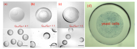 - Traditional processing of hydrogel particles, such as alginate particles, provides little control over the microstructure or size (diameter) of the capsules. When living cells are encapsulated in the particles, the diffusion of oxygen and nutrients is restricted by the presence of the thick hydrogel shell. Also, proliferation and fusion of cells are prohibited due to the lack of aqueous space.